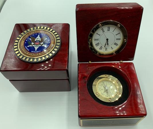 Can be personalized Size: 3.5″ Rosewood piano-finish clock with gold metal.
