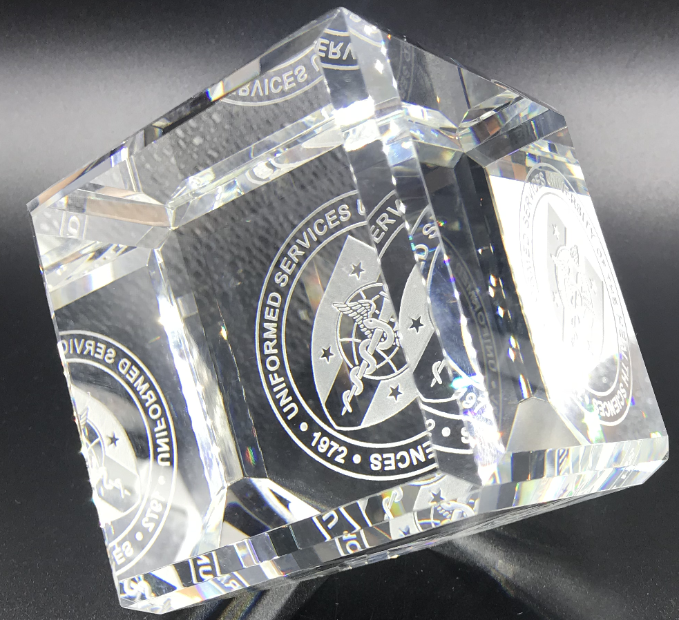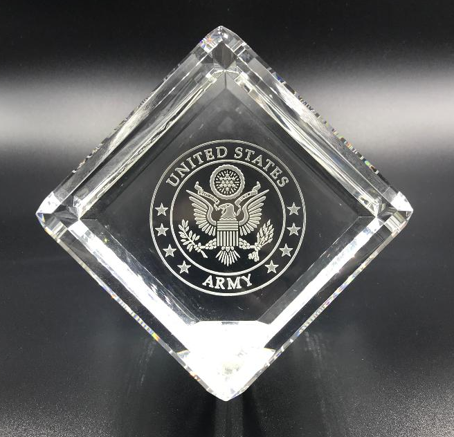 Size: 3 inches Can be personalized on the second side. Velvet presentation box included. Our Premier Crystal Cubes made of optic crystal with bevel edge on every edge. Cube stands alone or could be attached to a base. Packaged individually in a lined gift box. Premier Crystal is the ultimate way to recognize and honor! Length: 3″ Height: 4 1/2″ Width: 3″ Thickness: 3″ Overall Size: 3″(L) x 4 1/2″(H) x 3″(W)