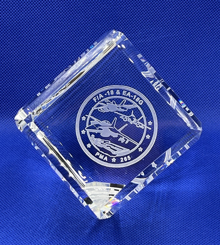 Custom Logo Crystal Cube with Personalized Text on Second Side